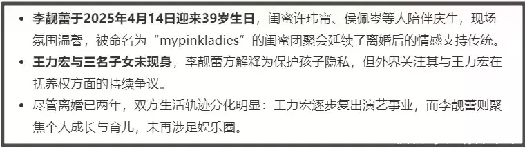王力宏和李靓蕾离婚风波闹得沸沸扬扬,作为李靓蕾的闺蜜,许玮甯虽然没有公开发声,但一直陪伴在李靓蕾身边,2025年,怀着宝宝的许玮甯还陪着李靓蕾度过了�岁生日。